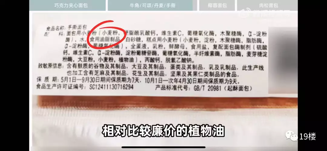 比如某品牌一款肉松面包就标明了沙拉酱含量≥23%,沙拉酱用量是远超肉松粉的。
