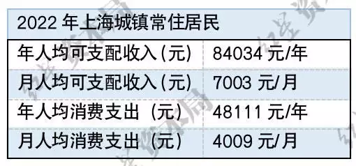 这是什么消费水平?根据上海市人民政府公布数据,2022年上海城镇常住居民的人均可支配收入为84034元,平均每月为7003元。