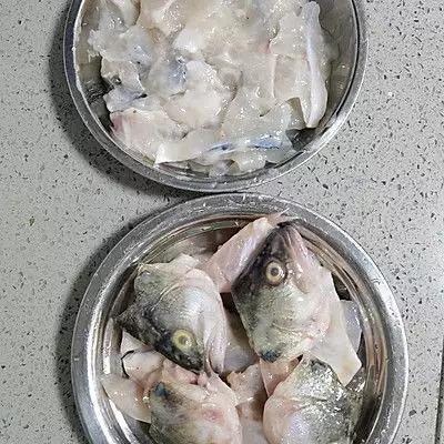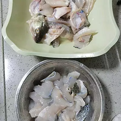 2、鱼肉切片,鱼骨切成块,洗干净滤干水份备用。