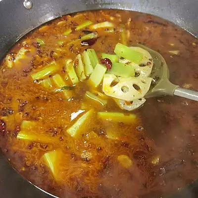 11、汤烧开后放入莲藕和莴笋,中大火煮五分钟