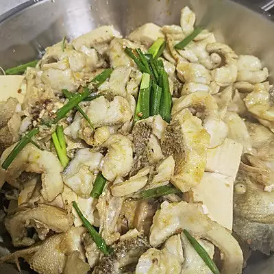 16、然后把鱼头鱼骨嫩豆腐捞到大盆里。