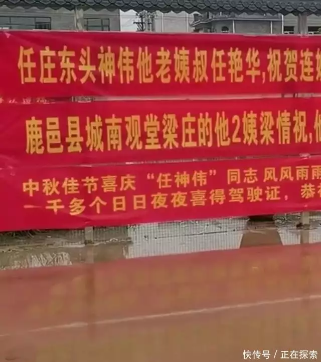从现场的布置来看,大哥为了庆祝可以说是煞费苦心,在村里搭舞台拉横幅,就是想让大家一起见证,他终于拿到驾照了。