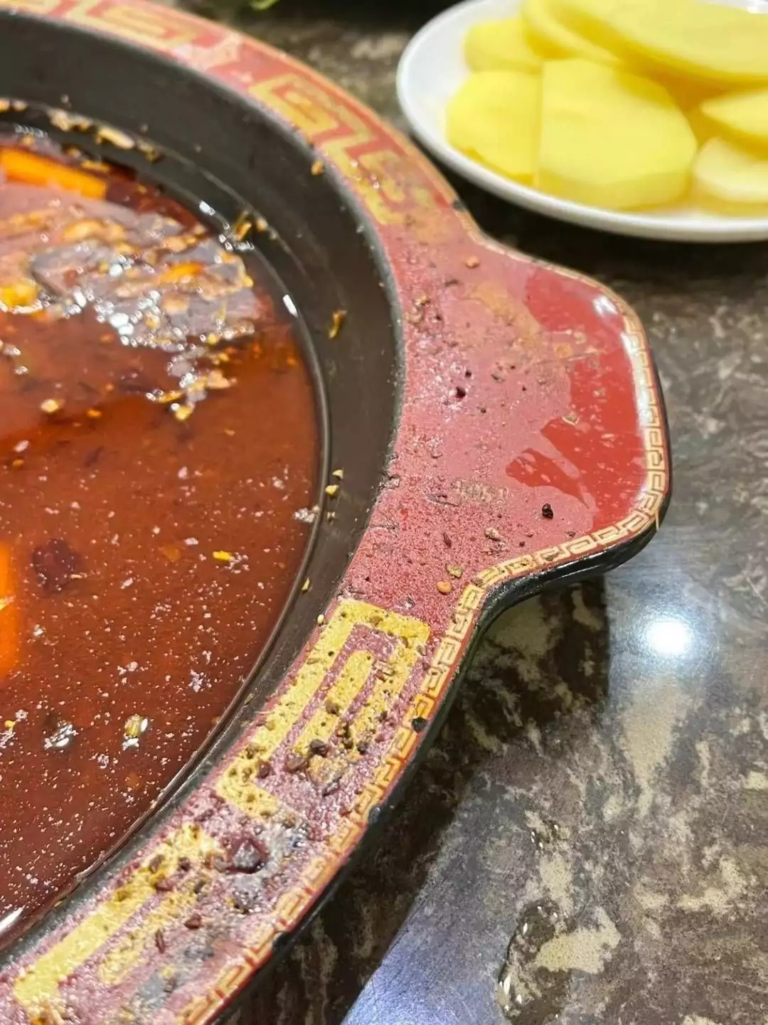 2月16日,成都的何女士前往吕记龙门阵美蛙鱼火锅(宽窄巷子店)用餐,锅刚端上桌就发现锅内油汤污浊,锅边也沾满了各种污渍,令人难以下咽。她找到店员询问,对方给出的解释是,将锅底端上桌的过程中汤汁有晃动洒出,锅边污渍只是汤汁里的佐料和食材细碎,整体属于正常现象。