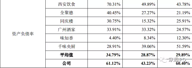 毛利率远低于行业平均水平,而在负债率上又远远高出均值。招股书显示,2019-2021年,老娘舅的负债率60.4%、43.23%、61.12%,同行业可比公司均值为29.89%、28.87%、34.79%。