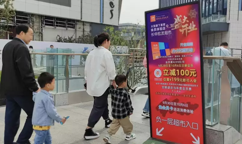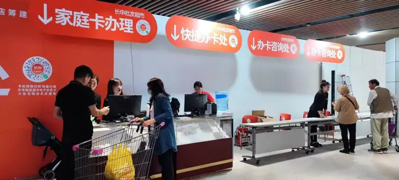 为让消费者了解体验会员制业态以及价格优势,从9月30日开业到10月6日,长申批发超市开业第一周可以免会员卡体验;同时为吸引消费者,门店加大了会员卡办理力度,在超市的出入口处、通往停车场的通道,都设置了非常醒目的会员卡办理标志。