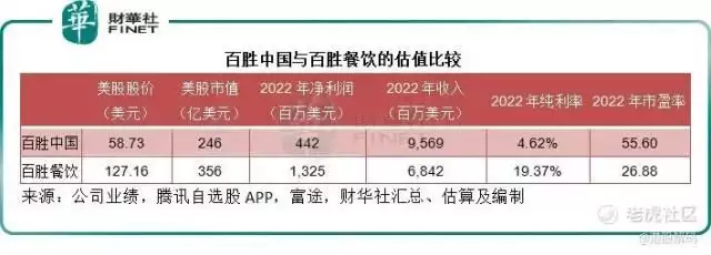 按美股现价58.73美元计算,百胜中国的美股市值为245.75亿美元,相当于其2022年净利润4.42亿美元的55.60倍。