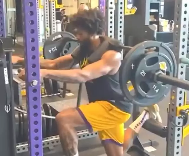 湖人晒出了浓眉哥的训练视频,现在的浓眉哥形象大变,留了大胡子,本·华莱士那种爆炸头发型,他在力量房进行苦练。