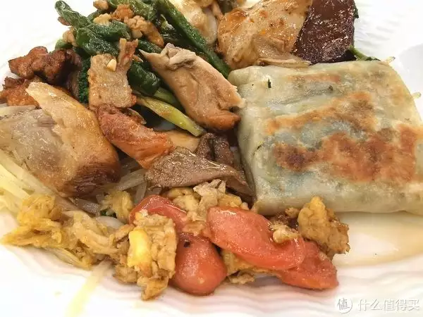 自助选菜我最爱了,佰佳旺每餐大概有几十种自选菜吧。荤素同价,最后一起称重。去的时候有点晚,菜不是很齐。但还是从其中选到了几种我可以接受的,虽然是同价,但必须荤素搭配。