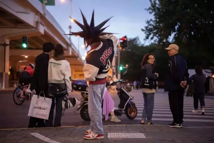 他频频挥手,向当天参与拍摄的几位上海本地志愿者告别。她们都带着小众精致、价格不菲的服装和道具。一个皮肤白皙的小姑娘顶着半扇彩虹头,另一位2003年出生的小姑娘将短发扭成两个尖角立在头顶,“我自己设计的,因为我觉得很像小恶魔和杜宾犬”。
