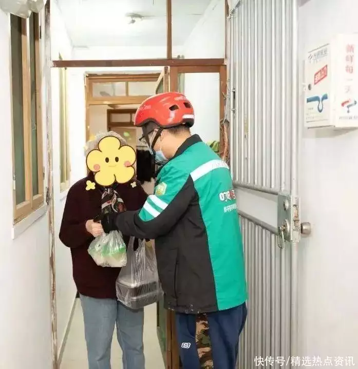 上午11:30,叮咚买菜的外卖小哥吕文斌敲响了家住中山居民区“悬空老人”李奶奶的家门,将一份热乎乎的饭菜送到了她的手中。
