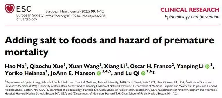 饮食习惯直接影响人类健康。2022年7月,哈佛大学公共卫生学院的研究人员就饮食咸口与死亡风险进行研究。