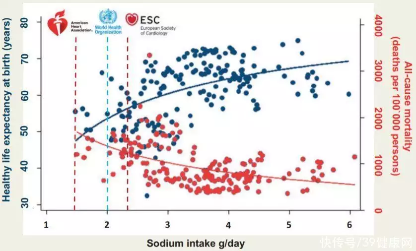 结果发现,每日平均钠摄入量每增加1克,约等于2.5克食盐,与预期寿命(自出生起预期健康)延长2.6岁,全因死亡减少131例/每10万人有关。