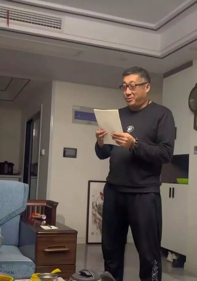 视频中,身穿灰黑色衣服的男子手持一书稿,戴着眼镜对着书稿认真道来:“尊贵的各位来宾中午好……今天我这个父亲祝你们永结同心……”男子还没读完,就遭到家人的大声“嘲笑”,“哈哈哈哈哈哈哈”的大笑声不断。