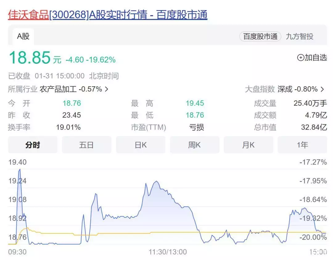 < style="text-align: left; margin-bottom: 10px;">【散户福利】热门精选股策略,每日免费领取涨的好不好,看过才知道????限前100人扫码领取????继獐子岛之后,又一家主营水产业务的A股公司引爆地雷,出现业绩和估值的“戴维斯双杀”。1月31日,被视为“三文鱼一哥”的佳沃食品(300268)股价开盘即重挫,全天紧贴20%最大单日跌幅低位匍匐而行。盘后龙虎榜显示,超7000万元机构资金夺路而逃。< style="text-align: left; margin-bottom: 10px;">