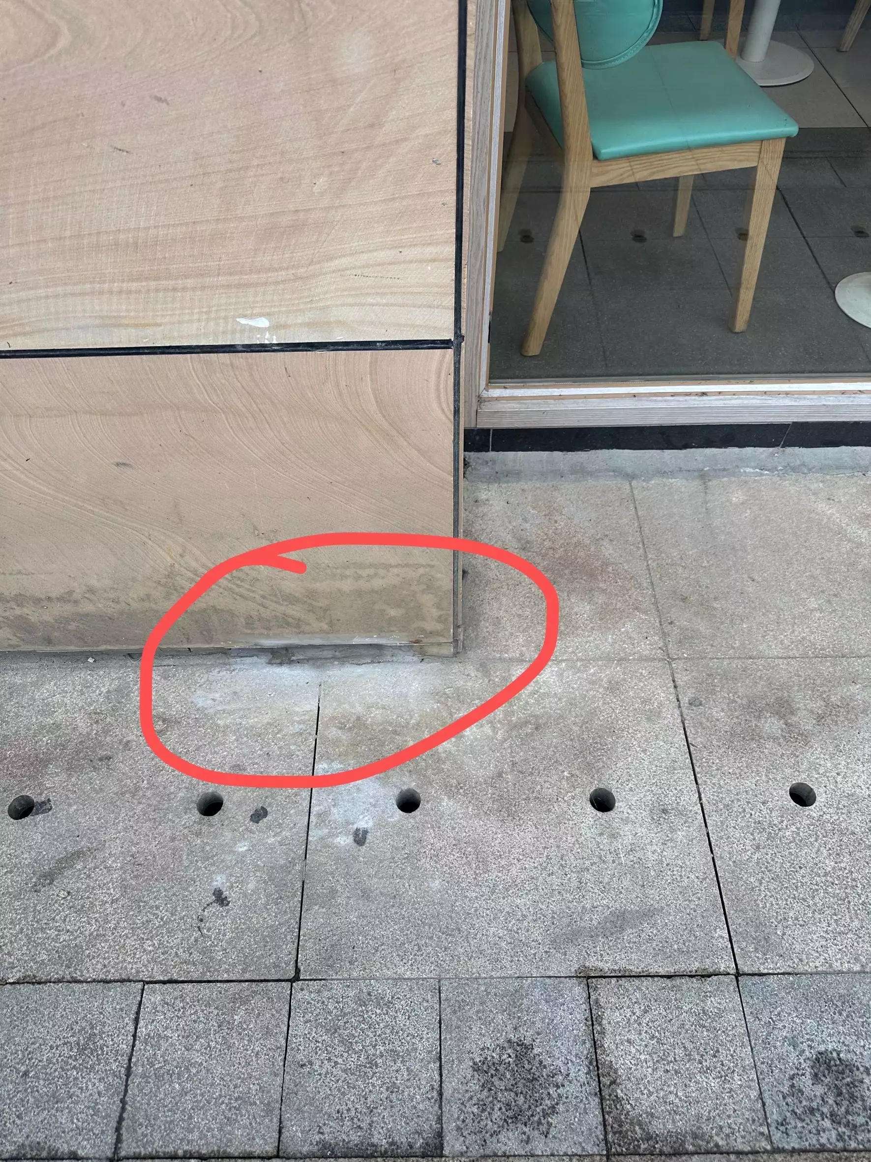 记者看到,老鼠洞已被水泥封上。张店长介绍,前段时间附近的商户在施工,所以把门店外立面墙角处震开了一个小洞,而此处墙角又连接着沿街商户的排水管道,一来二去就让老鼠钻了进去。张店长还表示,对于门店外的范围实际上应由门面房的商管公司进行日常维护管理和清洁,
