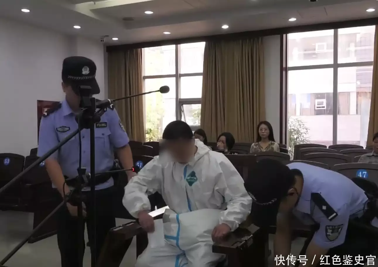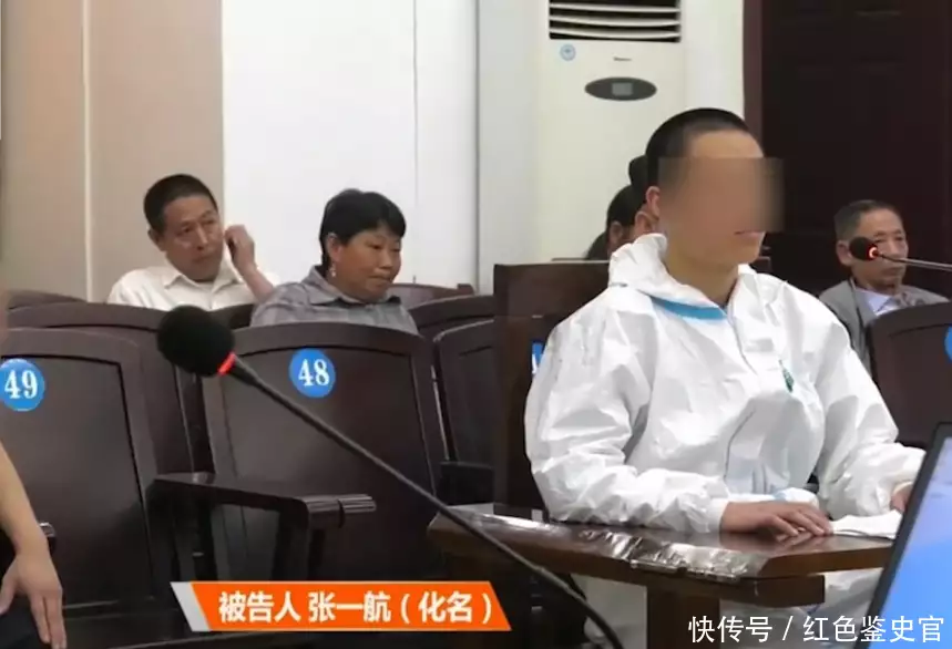 在法警的搀扶下,全副武装身穿防护服的张一航被带到了被告席,年轻的脸庞还留有几分稚气,可眼神里却深藏着几分忧郁,他的身后端坐着的是母亲和姐姐张珂瑜。