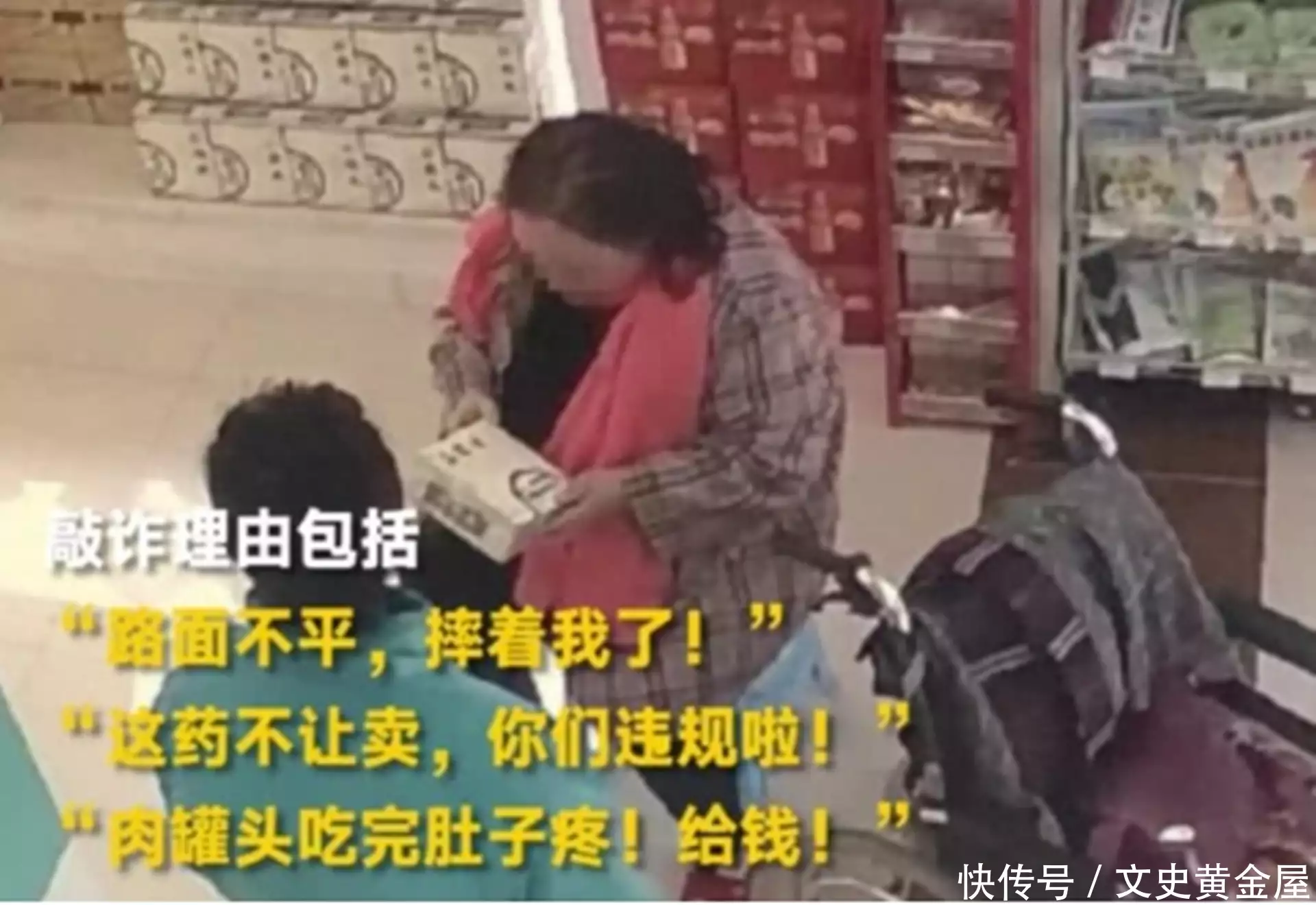 如果店主不同意,就撒泼打滚假装自己身体有问题,随时会晕倒。每当警察来了以后,她只口不提要钱的事儿,只说店铺欺负她这个老太太,随后又借自己不舒服的借口装傻。