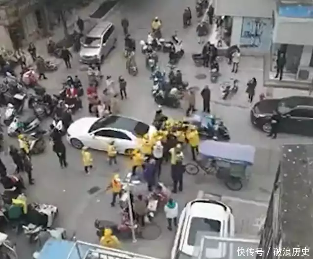 就比如去年的11月23日,网上爆出江苏泰州的一群美团骑手与奔驰车主发生冲突,围观群众称,该奔驰车主在自己的车被外卖骑手剐蹭后口中叫嚣: