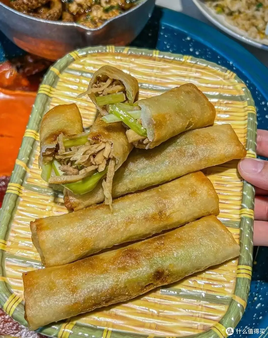 手工小吃:外皮酥脆的韭黄肉丝春卷口感丰富鲜香美味的马蹄千张肉卷不涮锅很好吃、涮锅更美味的手工蛋皮卷肉!哇!真当巴适、手工制作老底子的味道,让我吃到了童年那念念不忘的滋味!