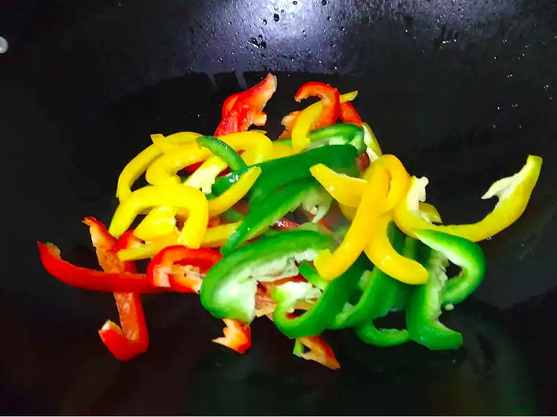 3、彩椒去籽洗净切丝待用。