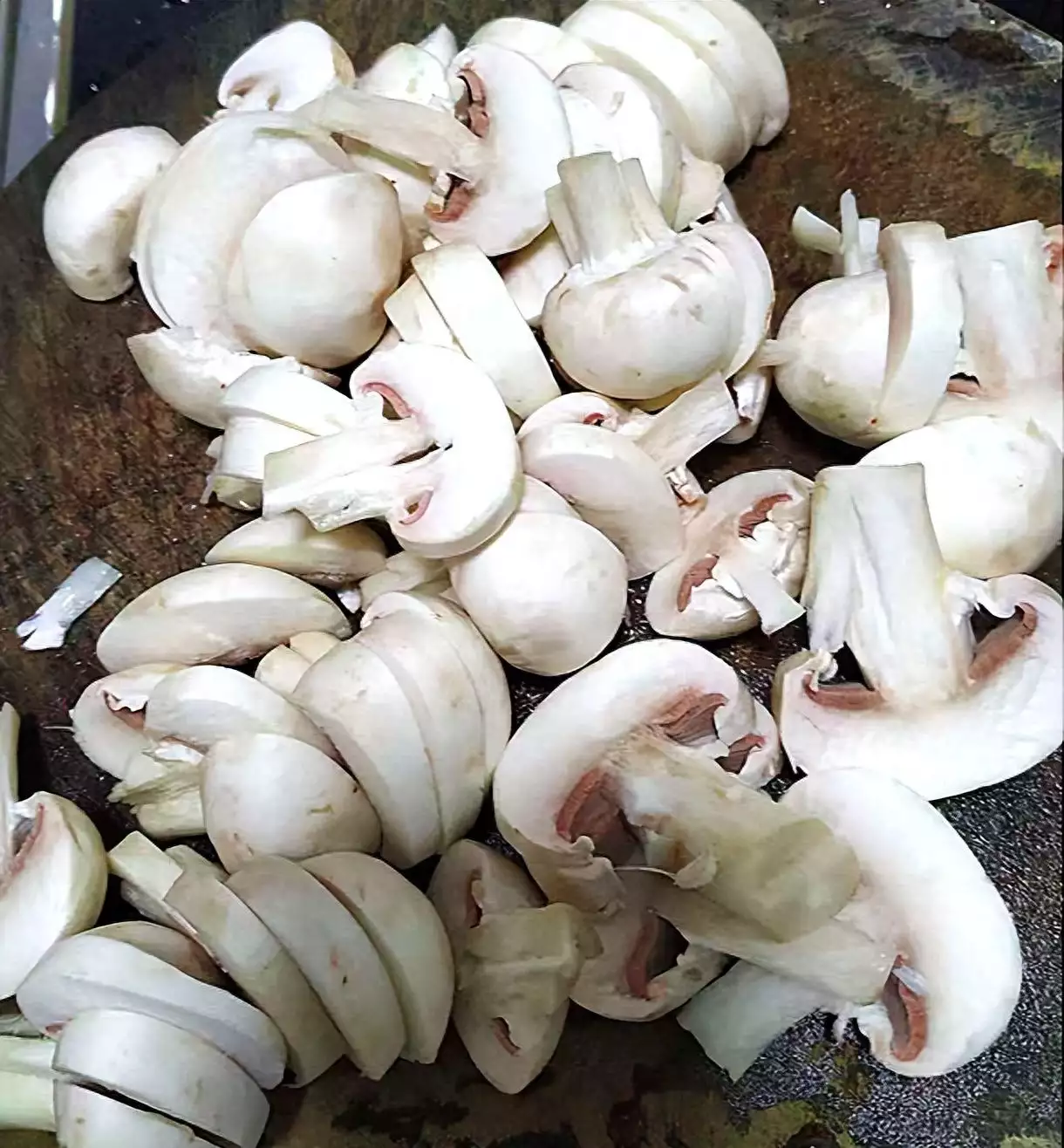 3、口蘑洗净切片。