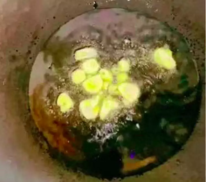4、热锅凉油,下入大蒜炒香。