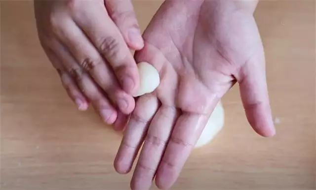 12.处理第三种面团的时候,也是揪成一个小面剂,个头比较小,在掌心直接搓圆。