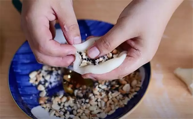 10.中间包上花生馅,收口的地方一定要收紧了。
