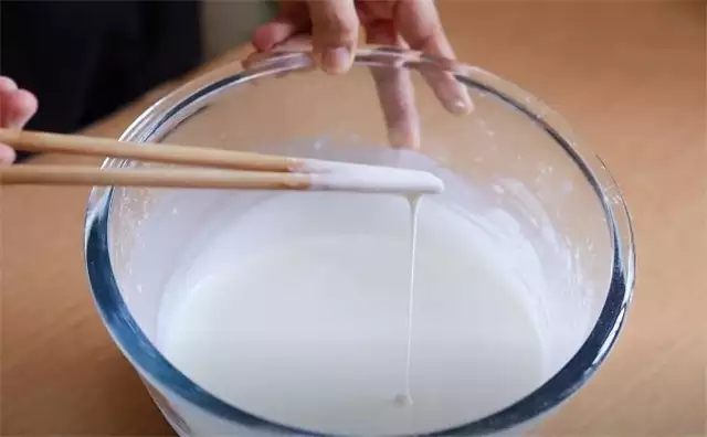 1.先拿250g的水磨糯米粉,再放50g玉米淀粉,白糖40g,可以根据自己的喜好调整,65g的玉米油,最后的时候用300g的纯牛奶拌匀,接着一直搅拌成这种细腻顺滑的程度就可以了。