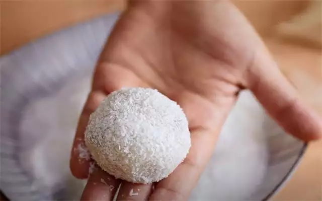 11.最后裹上一层椰蓉,这样我们的花生糯米糍就做好了。