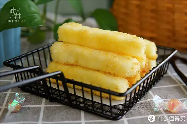 4、锅中倒入适量的油,油热后下入裹上面包糠的鲜奶条,炸至表面金黄后捞出控油即可。