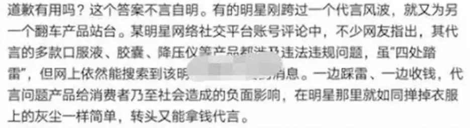 就是建议这些明星在接代言之前,一定要认真考察关于产品的一切。