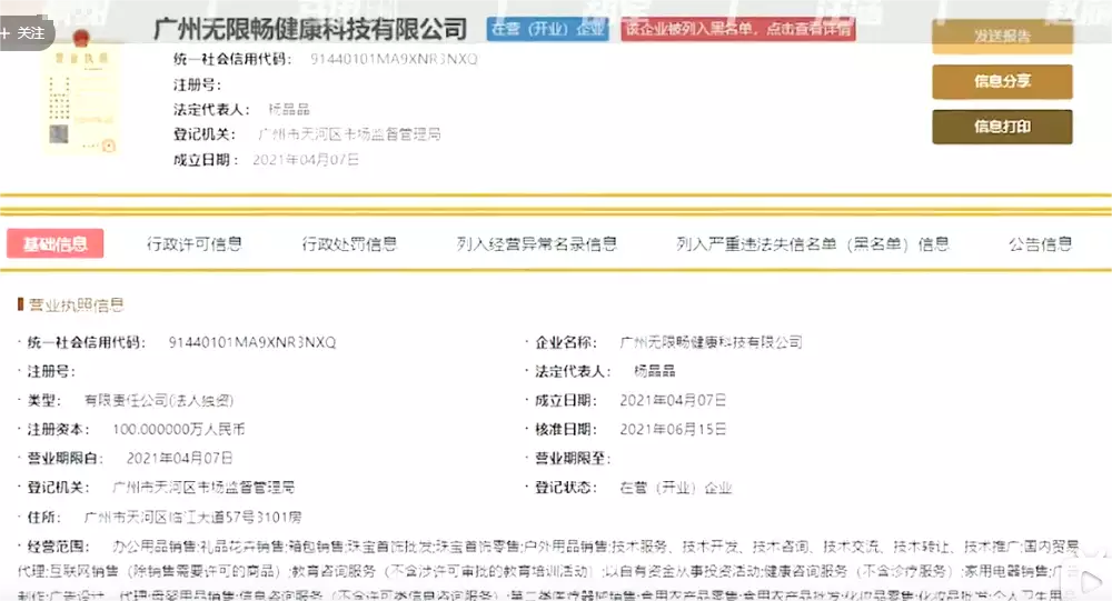 根据法律,广州无限畅健康科技有限公司被列为失信企业。