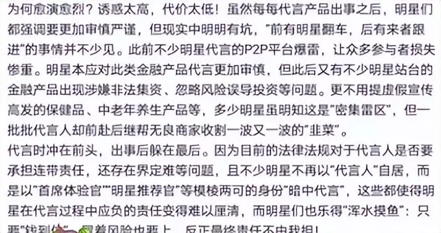 千万不要为了这么一点代言费,就搭上自己的名誉,去坑那些信任他们粉丝。