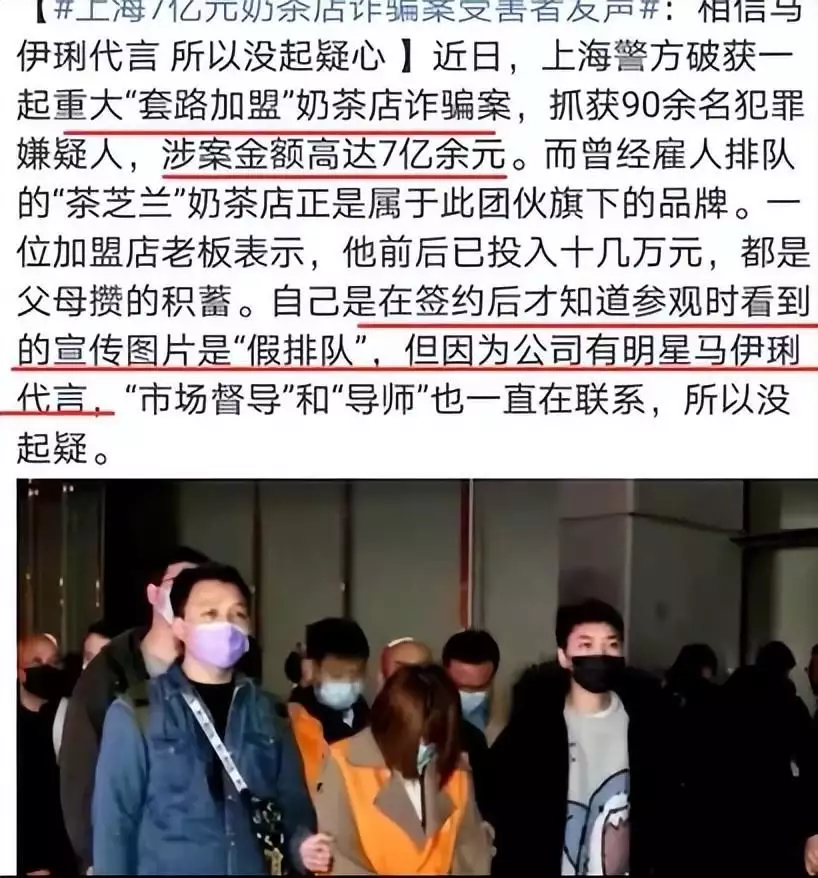 马伊琍代言的奶茶牌子“茶芝兰”被警方查获涉嫌恶意骗取加盟费。
