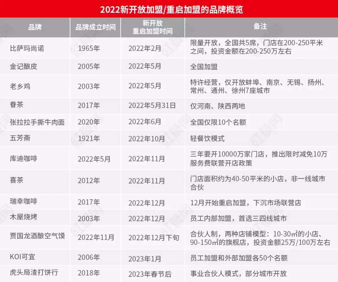 借助加盟商分摊风险,解决生存之忧对于一小部分餐饮品牌来说,或许放加盟本就在品牌计划之中,但实际上,有大部分餐饮品牌在2022年集体拥抱加盟,与商业环境的日趋复杂和不稳定性不无关系。