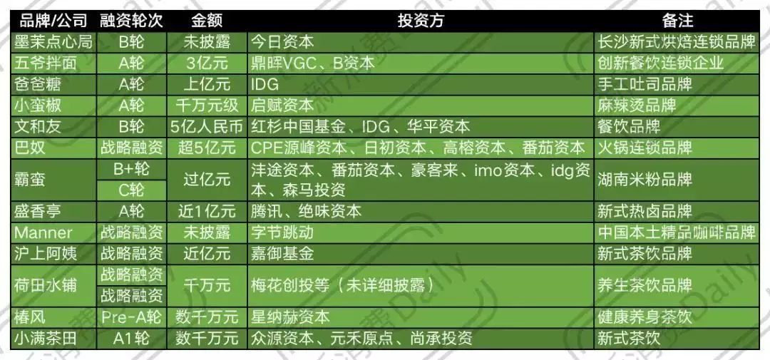 与「虎头局渣打饼行」同样为中式烘焙连锁品牌的「墨茉点心局」正是于当年6月获得了今日资本的A轮融资。