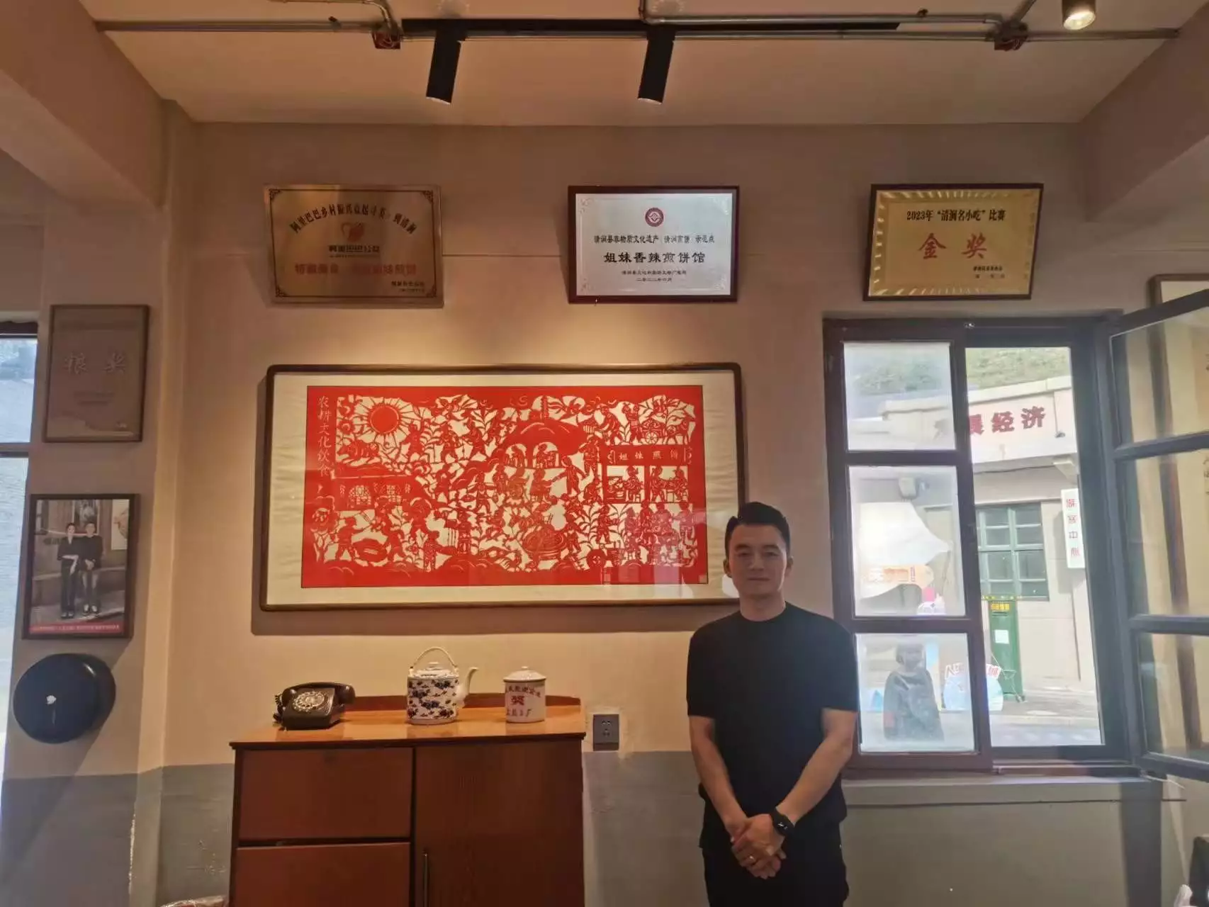 从去年开始,我参加了很多大大小小的美食比赛。第一次是在去年11月,很多煎饼店都去参加,我得了金奖,拿到了去榆林比赛的资格。在榆林我又获了奖,政府还免费给我店铺,让我在榆林开,我们的清涧煎饼也因此收录进榆林名小吃数据库了。