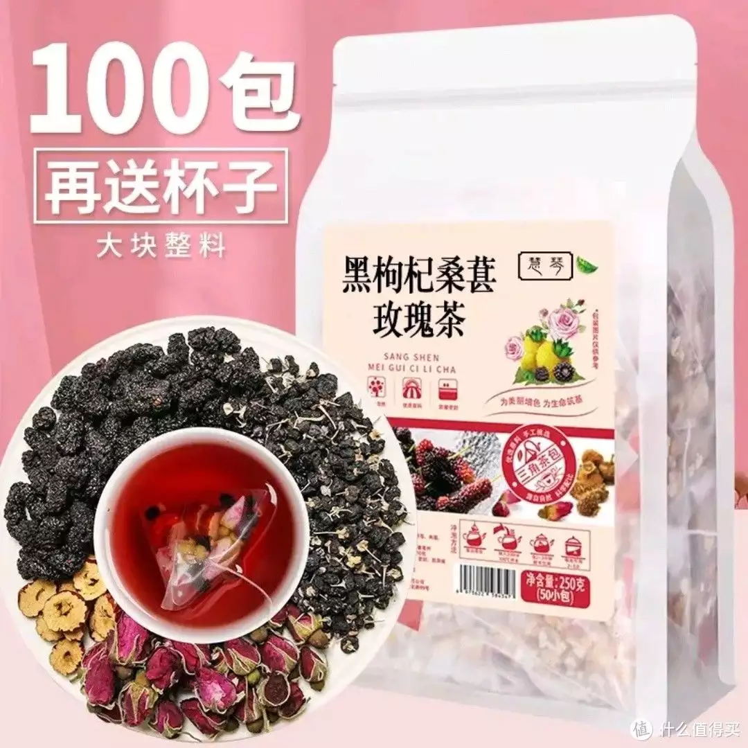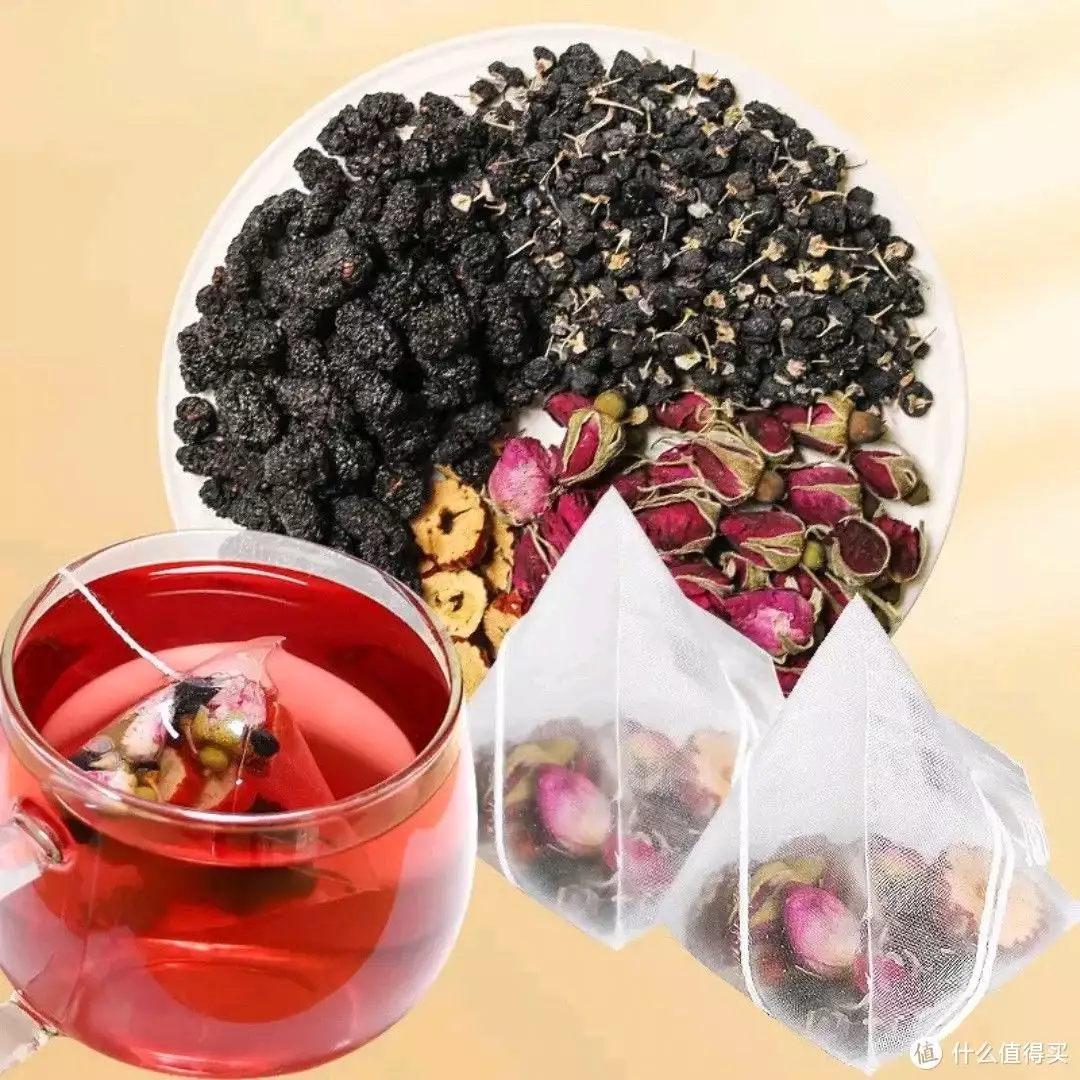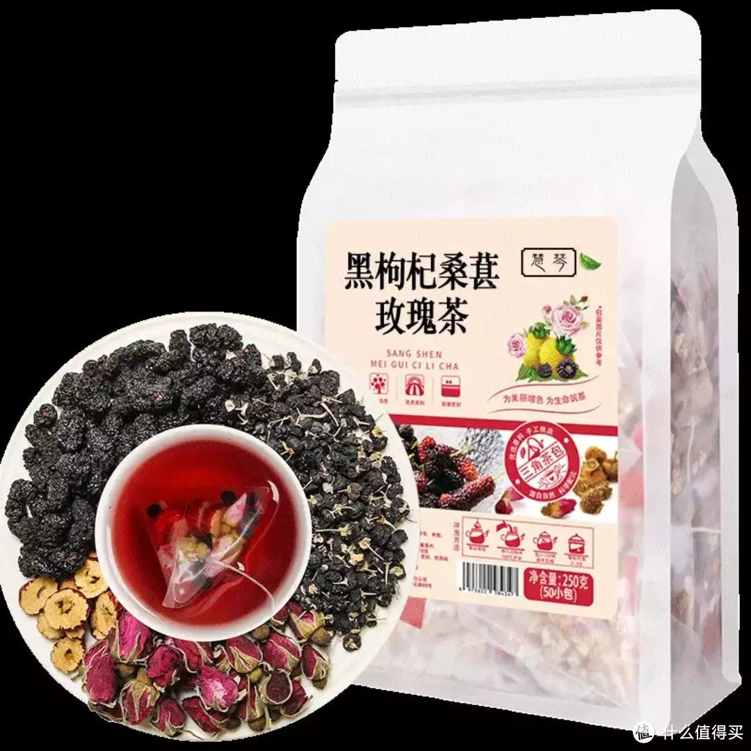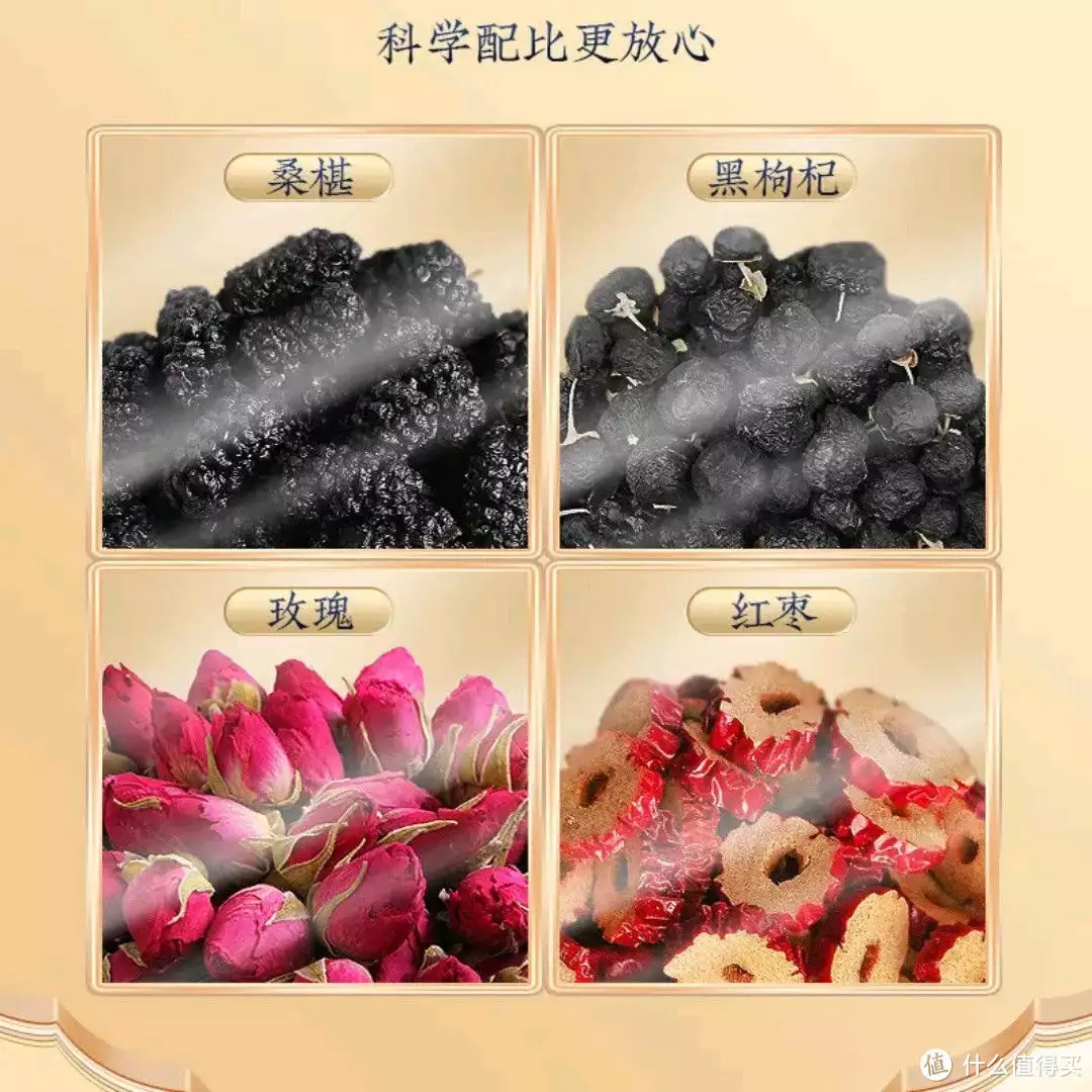 黑枸杞是一种珍贵的中药材,含有丰富的营养成分,如维生素C、维生素E、铁、钙等矿物质,以及枸杞多糖等成分,具有抗疲劳、抗衰老、抗氧化等多种功效。桑葚则是营养丰富的水果,含有大量的水分、糖类、多种维生素、胡萝卜素、人体必需微量元素等,可以帮助滋阴补血、生津润燥、提高免疫力等。而玫瑰花则是一种具有芳香气味的中药材,具有疏肝解郁、调节情绪、调理月经等多种功效。