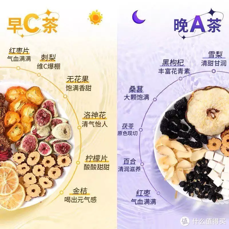 而洛神花茶是一种香味怡人的花草茶,它具有舒缓神经、促进放松的作用。同时,花茶还有助于排除体内毒素、改善肤色和补充水分,让你的皮肤焕发光彩。晚A茶巧妙的将刺梨干、黑枸杞和桑葚干搭配茶,不仅可以享受到水果的甜美和茶的清香,还能获得多种营养物质的滋补。这样的组合既能帮助提高身体的免疫力和抵抗力,又能滋养肌肤,促进身体健康。