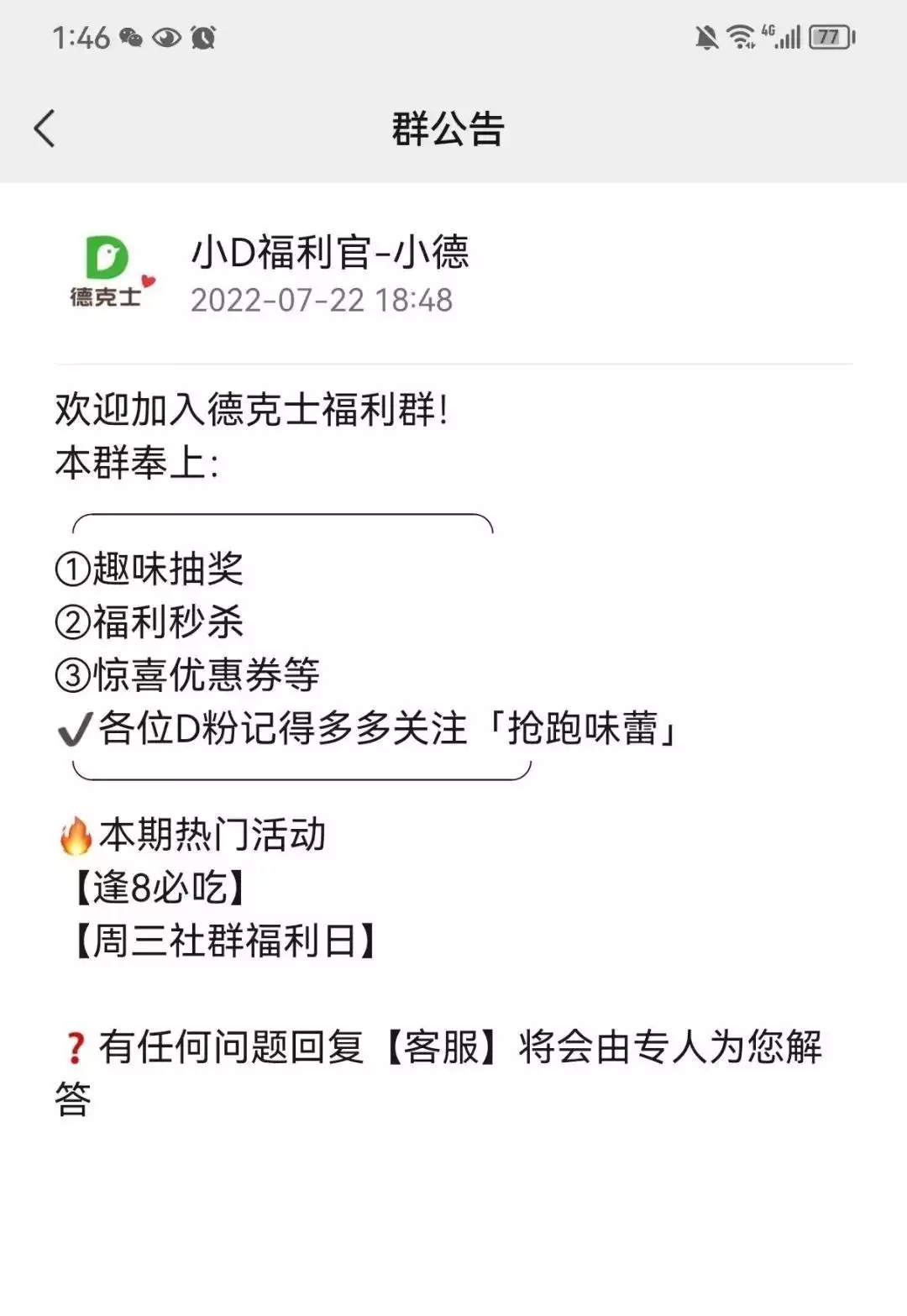 路径:公众号菜单「我D会员」—会员中心|入会有礼—进入福利群—添加企微进群