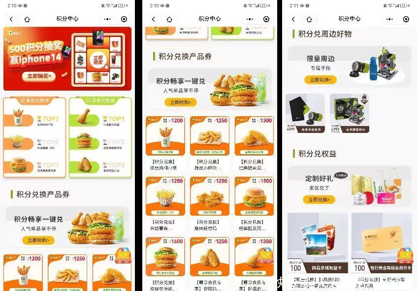 此外,德克士的积分还可用于抽奖,每500积分抽一次,抽奖可获得产品、周边,最高可得iPhone一台。