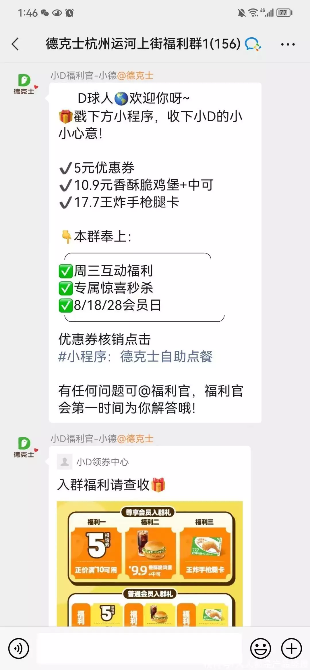 西式快餐行业具有明显的高复购、高分享的特征,是最适合做私域运营的行业之一。德克士也抓住了这点,积极运营社群,将社群作为自己私域营销的主阵地。