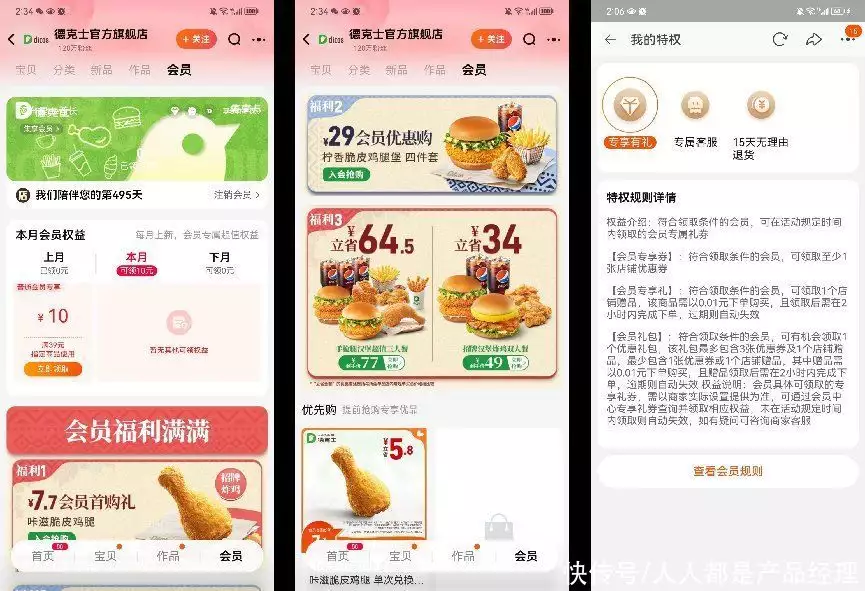 德克士顺应时代发展,推出以“付费会员”为主的会员体系。下面简单拆解德克士的会员体系,主要包括三块:付费会员、基础会员、积分体系。