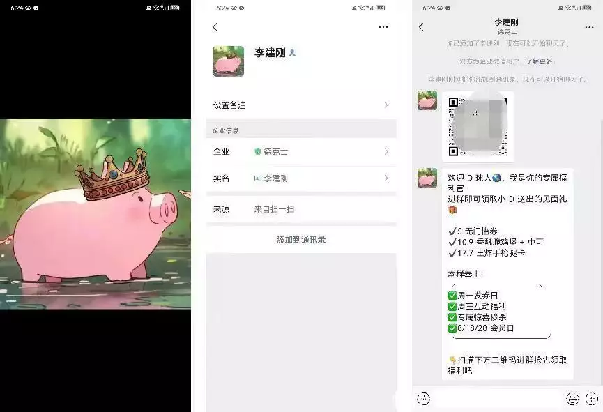 德克士的企业IP通过企业微信进行承接,发布的内容以品牌宣传、发放福利、活动预告为主。