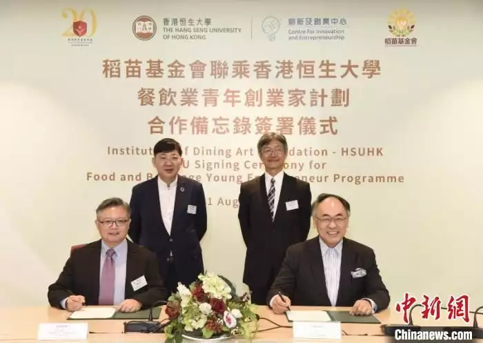 中新网香港8月11日电 香港稻苗饮食专业学会旗下的稻苗基金会11日与香港恒生大学(恒生大学)签署合作备忘录,共同推出“餐饮业青年创业家计划”,希望借此支援在港创业的青年在餐饮服务行业开拓新机遇,为有创业意愿和具创意的年轻人提供专业培训和相关资源,助他们实现创业梦。