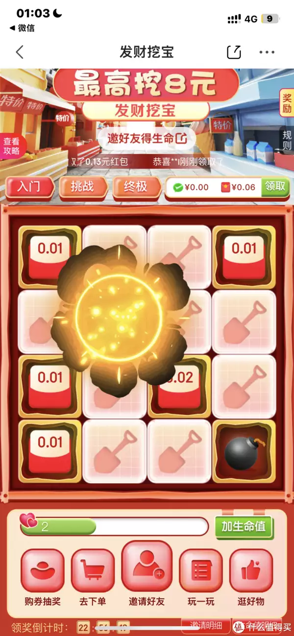 京喜和京东极速版还有一些比较小额度红包领取渠道(通常一毛以下)比如“发财挖宝”
