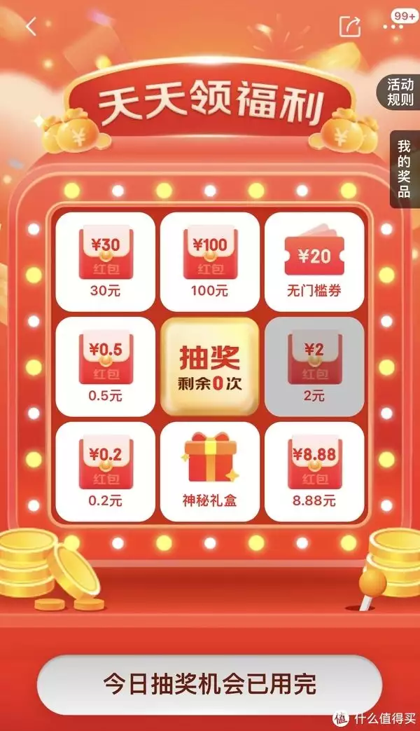 红包有效期两天,抽红包的都不会低于本身的面值,比如这种花一元抽的,你一定会得到大于一元的红包,不会亏。还有全是券的转盘就不要抽了,一般的券都不好用。极小概率有实物奖品。