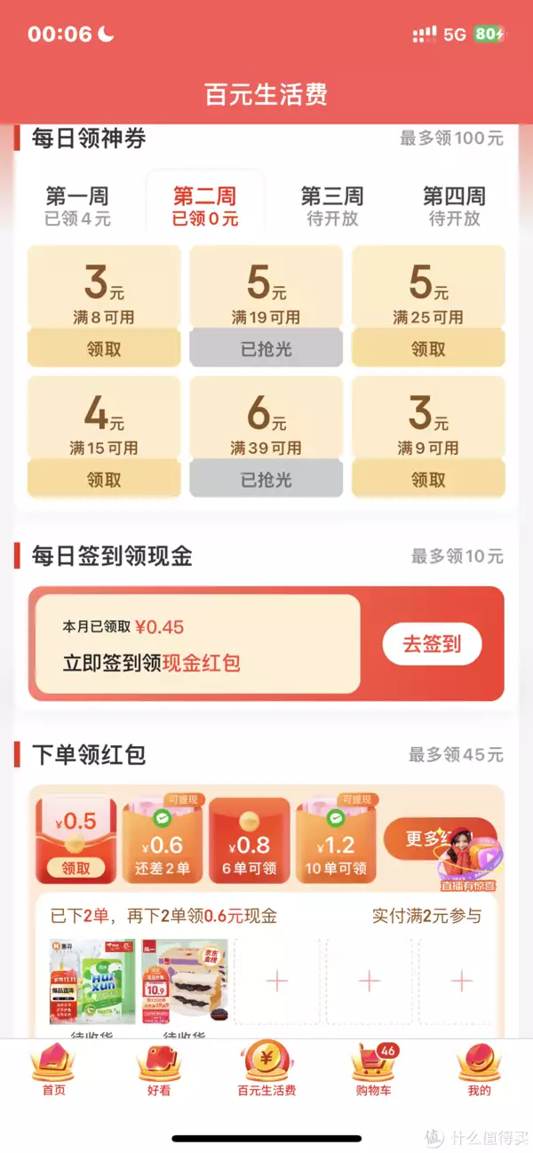 大部分红包都不太大(一元以下),有效期一般在一到两天,需要下单时再去领领。