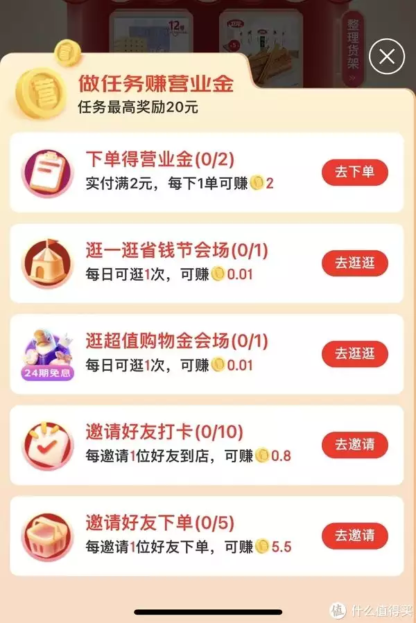 任务可获得营业金,其他任务嫌麻烦不做的话,登入可获得0.3营业金,相当于0.3的红包。